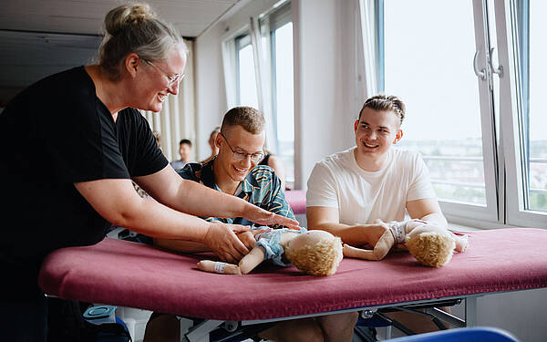 Die theoretischen Kenntnisse werden an unserer Berufsfachschule für Physiotherapie vermittelt. Die praktische Ausbildung beginnt am Ende des ersten Ausbildungsjahres und wird parallel zum theoretischen und praktischen Unterricht größtenteils am Universitätsklinikum Augsburg in unterschiedlichen medizinischen Fachabteilungen absolviert. Besondere Fertigkeiten bspw. im Bereich der Prävention und Rehabilitation erwerben die Auszubildenden in Fachkliniken, Rehazentren oder Physiotherapie-Praxen. Durch eine enge Verzahnung von Theorie und Praxis bereiten wir alle Auszubildenden perfekt auf die anstehenden Prüfungen vor.