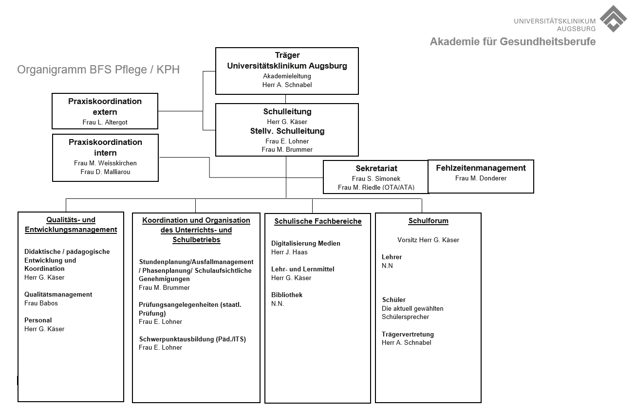Organigramm der Berufsfachschule für Pflege und Krankenpflegehilfe